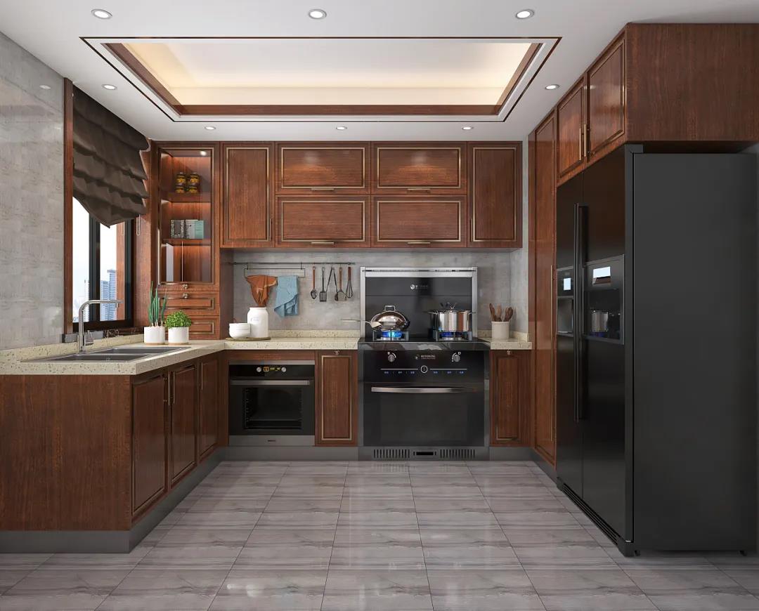 櫥柜區(qū)域主要是配合著洗菜區(qū)、操作臺、灶臺三個(gè)部分的。