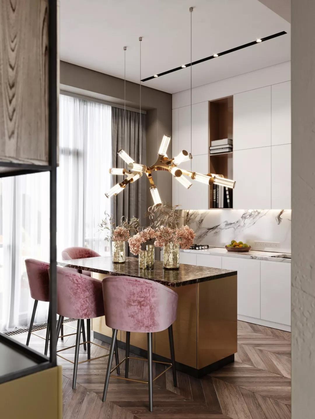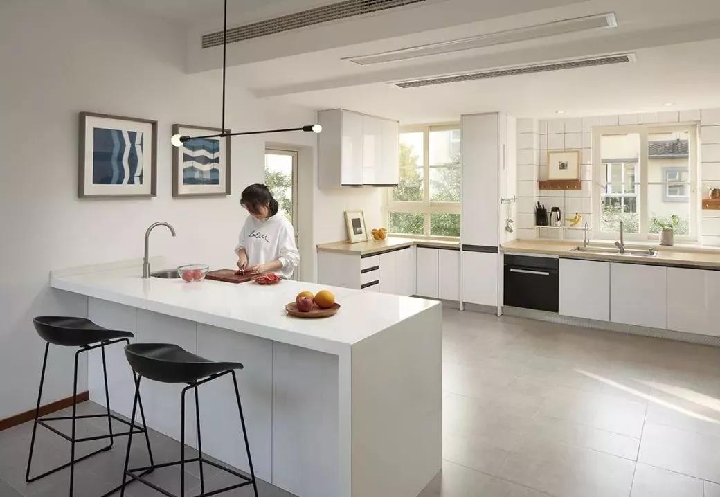設(shè)想一下,廚房用具齊全,環(huán)境優(yōu)美,一家人以島臺(tái)或餐桌為核心聚攏,一起洗菜做飯,一起吃飯,多么其樂融融呀。