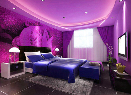 大面積的紫色會使空間整體色調(diào)加深,從而產(chǎn)生壓抑感。建議不要將兒童房裝修成紫色,那樣會使人有無奈的感覺。