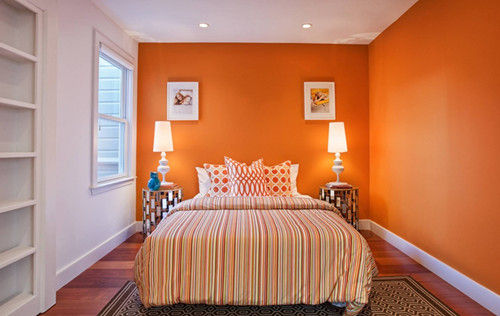橙色用在臥室不容易使人安靜下來,不利于睡眠。但將橙色用在客廳則會營造歡快的氣氛。