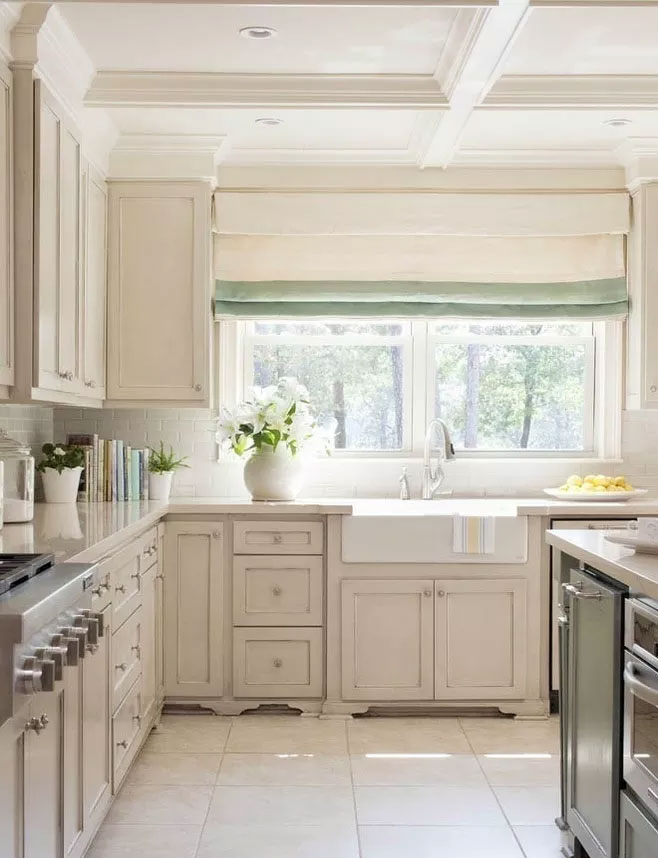 黑、藍(lán)色為水氣之色,嚴(yán)重克滅爐灶之火,易導(dǎo)致宅運(yùn)不旺,一般宜用輕淡而明亮的顏色,如白色、綠色等為主色調(diào),廚房的地面宜用深沉厚重的顏色。