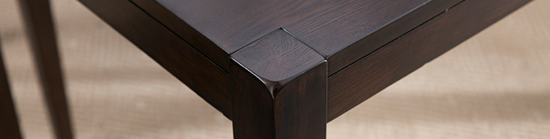 實木與貼皮家具產品最根本的區(qū)別,首先是看木紋,同一塊實木,其兩個交界面木紋應能明顯看出縱切面與橫截面的自然銜接。而貼面家具在制作時遇到兩個相臨交界面,通常都不轉彎,而是各貼一塊,因此兩個交界面的木紋通常不應銜接。