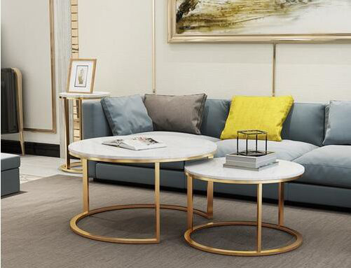 石質(zhì)茶幾紋理美觀,能夠傳遞出自然、樸實(shí)的感覺。大理石茶幾根據(jù)顏色不同適合不同的裝修風(fēng)格,白色可搭配田園風(fēng)格、黃色可搭配歐式風(fēng)格、大理石臺(tái)面配合實(shí)木桌腿還可以搭配中式風(fēng)格。