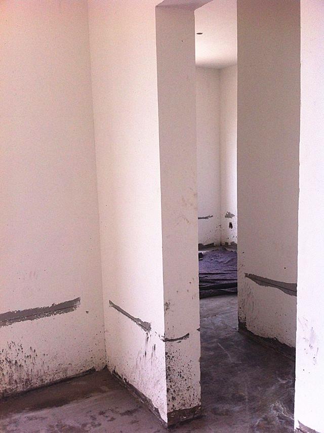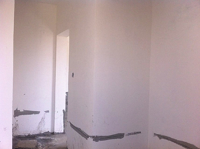 全白的墻壁,除了有的地方是壁紙和瓷磚